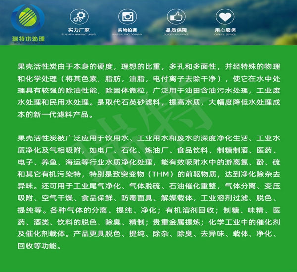 以上果殼活性炭產品信息由鞏義市瑞特水處理材料技術部編輯提供,轉載請說明文章出自鞏義瑞特水處理。